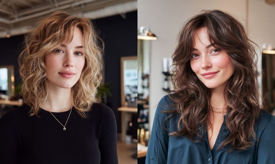 This style works beautifully for medium-density hair that wants lift without sharp angles. It flatters softer face shapes by creating visual direction and flow.